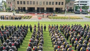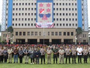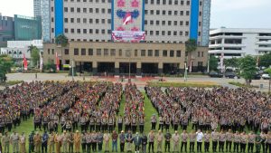Jakarta Barat, Dalam upaya menciptakan situasi yang aman dan kondusif menjelang pemilihan Gubernur dan Wakil Gubernur Provinsi Daerah Khusus Jakarta Tahun 2024, Polres Metro Jakarta Barat bersama dengan 3 Pilar Jakarta Barat, KPU, Bawaslu melaksanakan Apel Gelar Pasukan di halaman Kantor Walikota Jakarta Barat, Selasa (26/11/2024).
