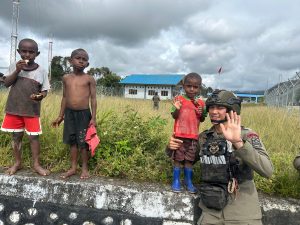 Sebagai bentuk kepedulian, personel Operasi Damai Cartenz-2025 memberikan makanan ringan kepada anak-anak setempat. Tindakan sederhana ini membawa kebahagiaan bagi anak-anak dan juga mempererat hubungan antara Polri dan masyarakat.