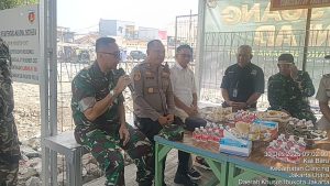 Selain menjalin komunikasi dan koordinasi lintas sektor, Kodim 0502/JU juga menyalurkan bantuan sosial berupa 25 paket sembako kepada warga sekitar sebagai bentuk kepedulian terhadap masyarakat.