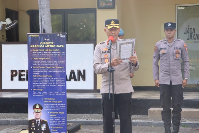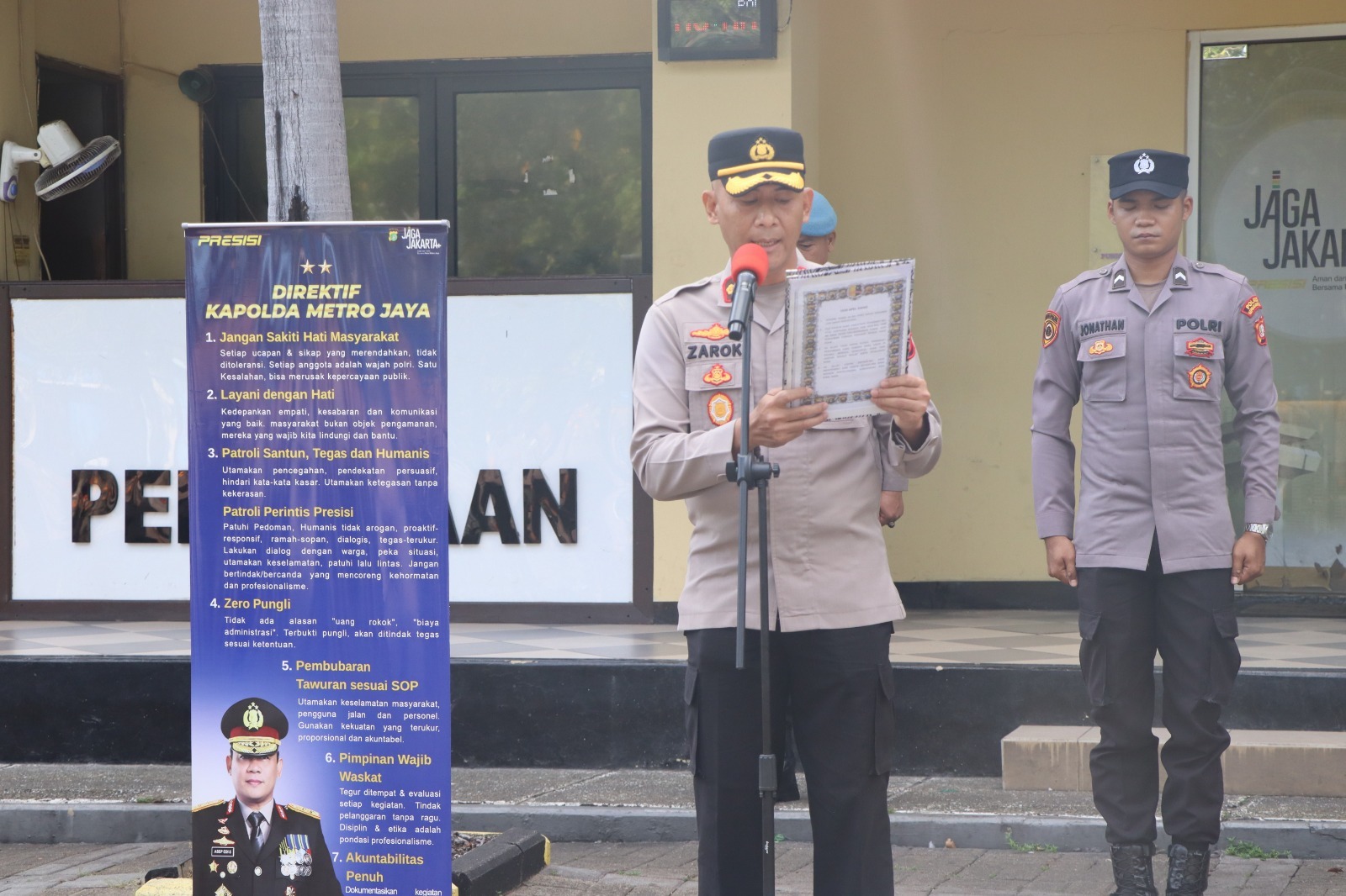 Dalam arahannya, Wakapolres menegaskan kembali direktif Kapolda Metro Jaya sebagai pedoman pelaksanaan tugas di lapangan. Anggota diingatkan untuk menjaga kepercayaan masyarakat dengan sikap yang santun, tidak arogan, serta mengedepankan pelayanan yang humanis dan penuh empati.